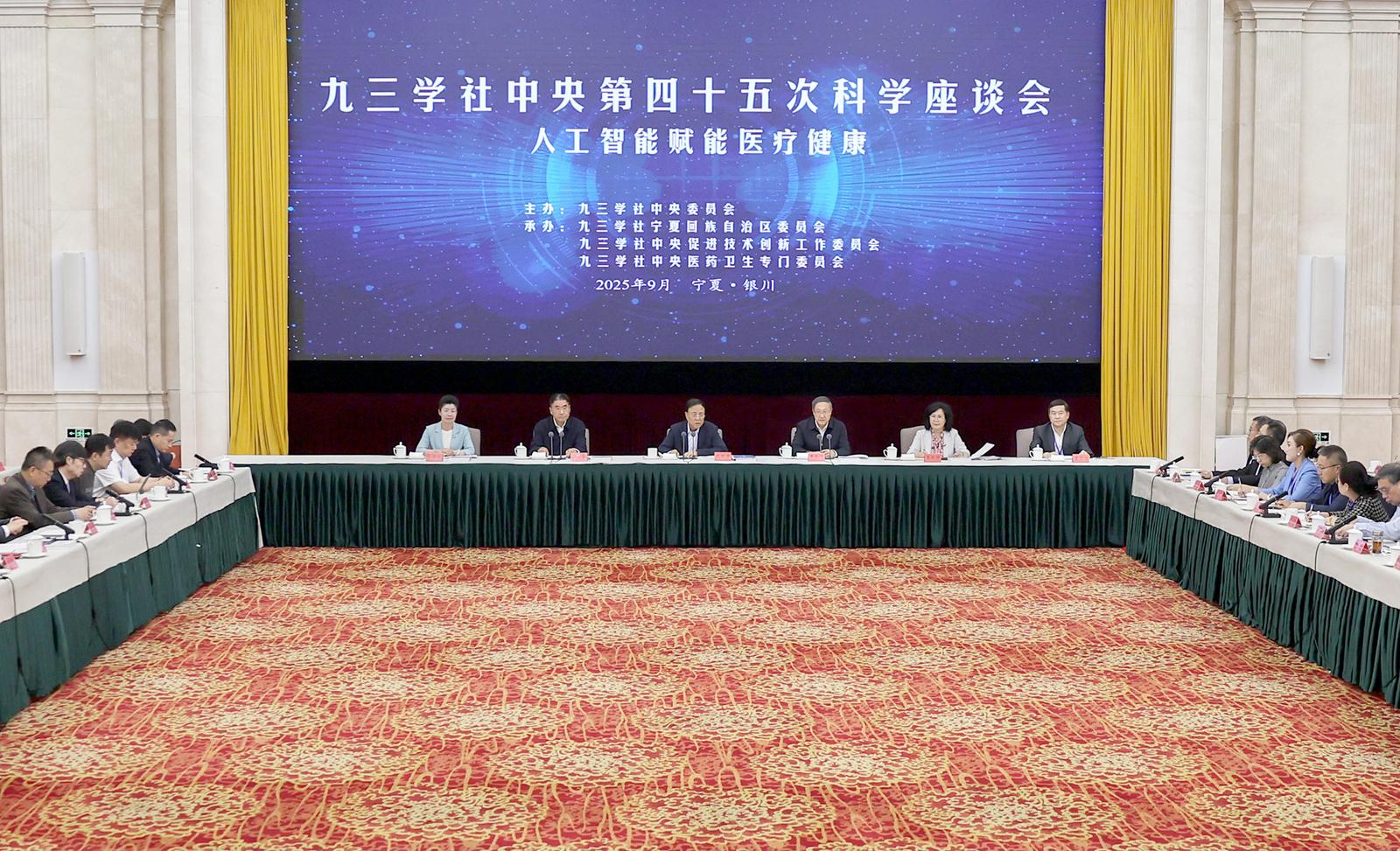 9月22日至24日,九三學(xué)社中央第四十五次科學(xué)座談會在銀川舉行,與會專家學(xué)者圍繞“人工智能賦能醫(yī)療健康”主題深度交流、聚智獻(xiàn)策。全國人大常委會副委員長、九三學(xué)社中央主席、中國科學(xué)院院士武維華出席會議并講話,自治區(qū)黨委書記、人大常委會主任李邑飛出席并致辭,九三學(xué)社中央副主席劉政奎主持。中國工程院院士董家鴻,自治區(qū)黨委常委、統(tǒng)戰(zhàn)部部長竇敬麗,自治區(qū)政協(xié)副主席、九三學(xué)社寧夏區(qū)委主委馬秀珍出席。
