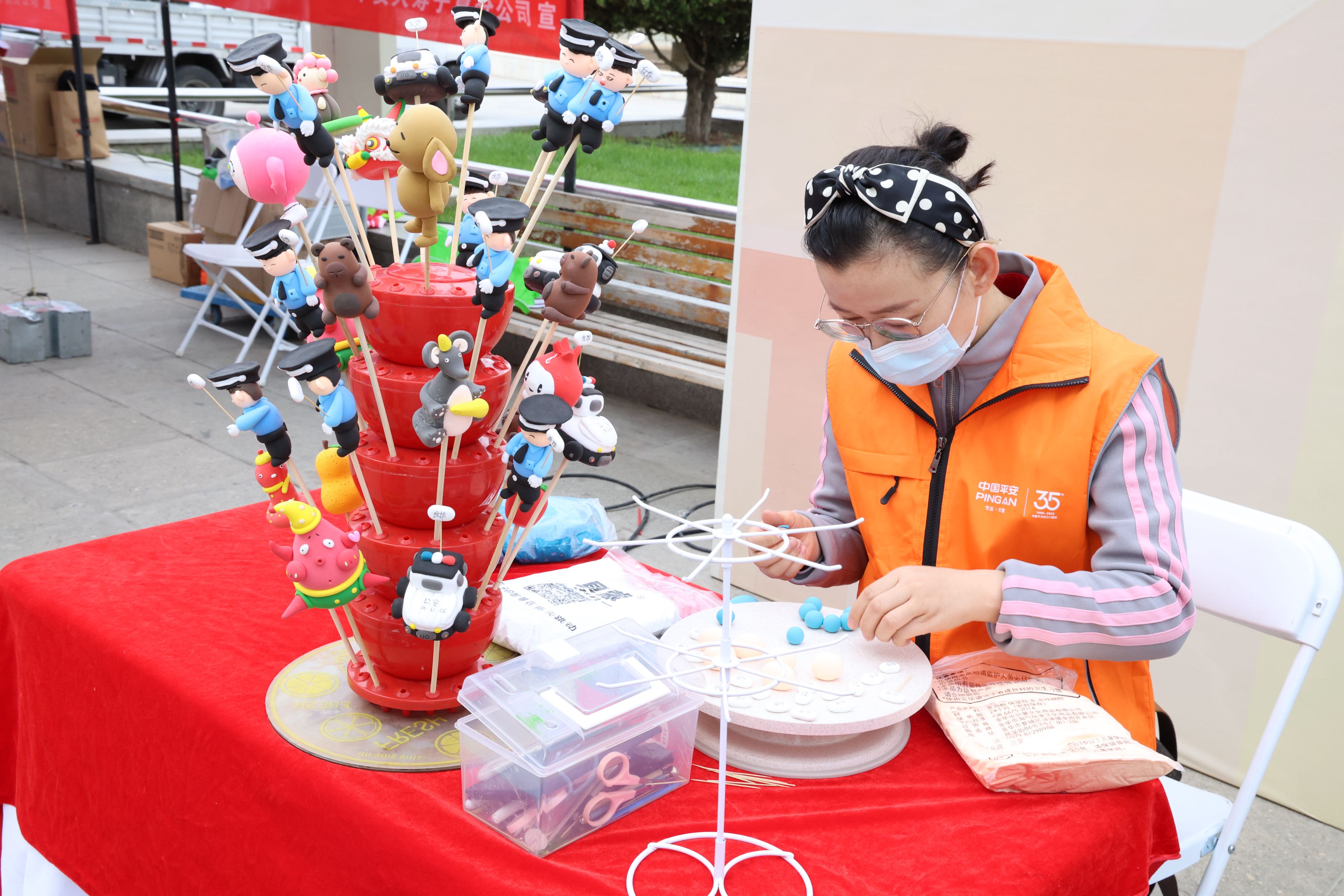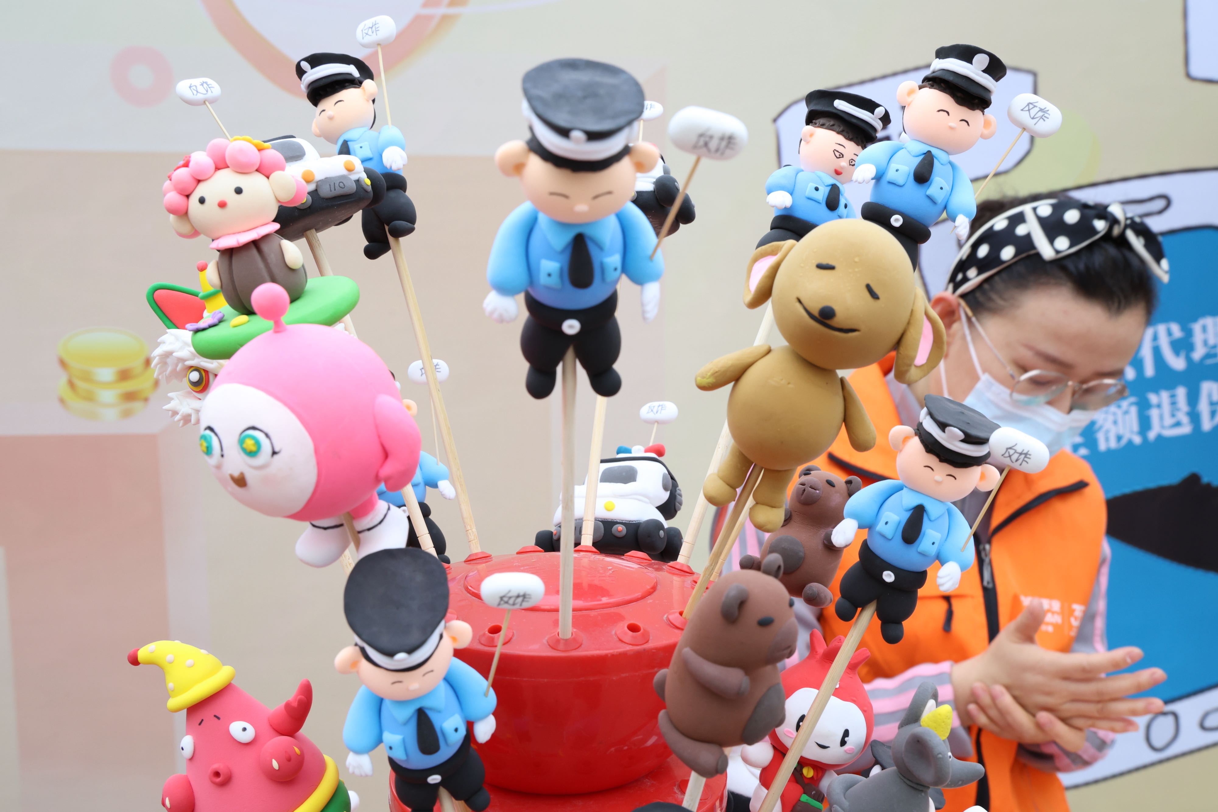 此外,“金融消保小面人”捏制體驗環(huán)節(jié),現(xiàn)場邀請專業(yè)面塑師傅現(xiàn)場教學(xué),提供彩泥、工具包等材料,將“識別非法中介”“防范電信詐騙”、“正確查詢保單”等知識點,轉(zhuǎn)化為卡通面人造型標(biāo)牌的小衛(wèi)士。參與者可在師傅指導(dǎo)下捏制簡單面人領(lǐng)取獎品,廣大消費者參與熱情高漲,在動手過程中輕松記憶金融常識。
