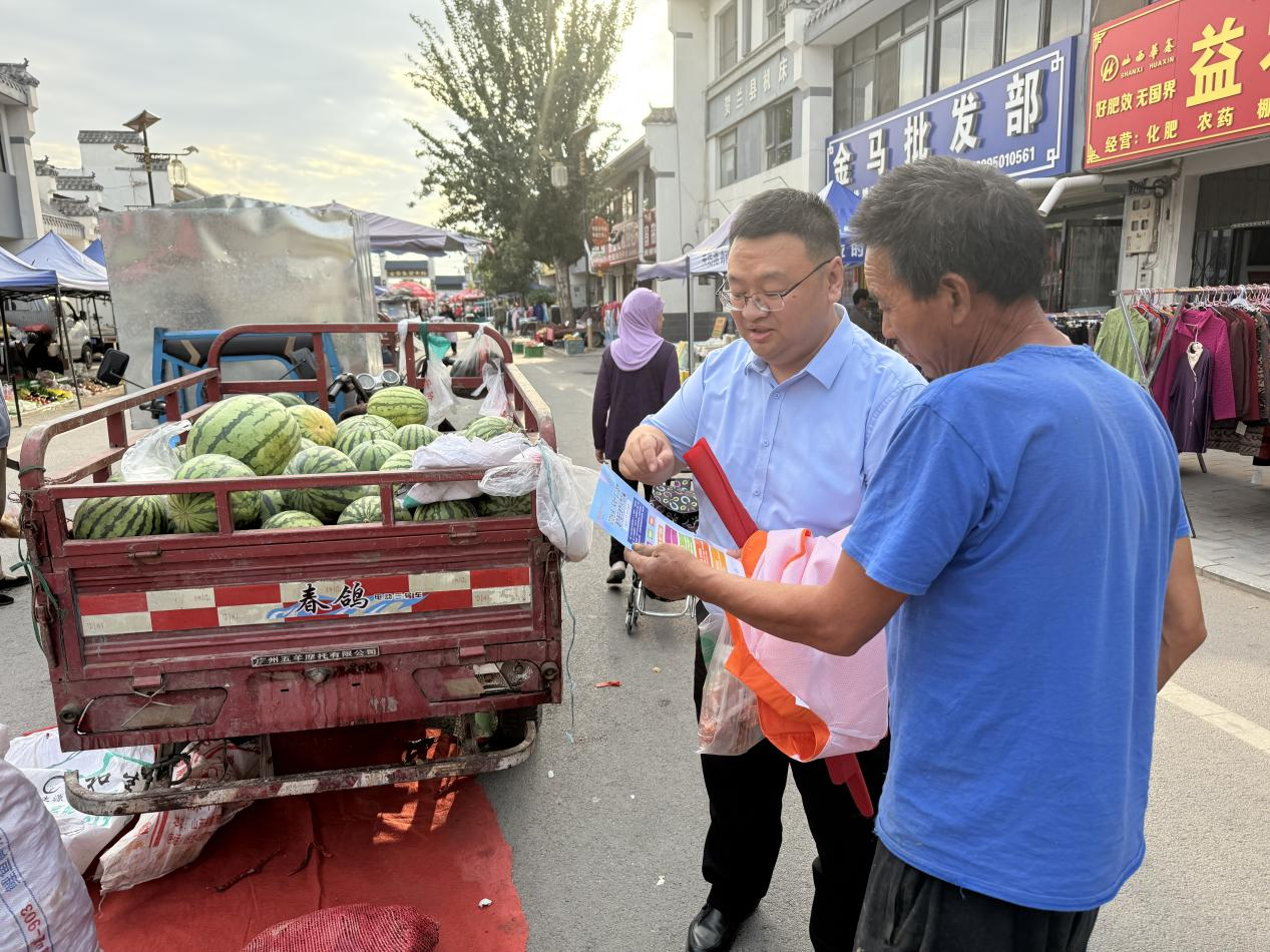 在賣餅子的大姐、賣西紅柿的大哥處。工作人員向他們講道:“遇到手機陌生鏈接千萬別亂點,您了解一下消費者的八項權益,遇到問題一定要聯(lián)系正規(guī)渠道,千萬別相信一些陌生人的承諾……”
