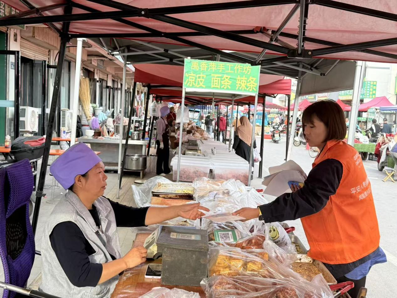 離開田間,宣傳小分隊又來到熱鬧的金貴鎮(zhèn)集市。剛進集市,就看到賣西瓜的大哥正忙著給顧客稱瓜,三輪車里的西瓜堆得像小山?!按蟾?,您這西瓜甜,生意肯定好!”工作人員一邊幫著遞塑料袋,一邊聊起消保知識,“您收付款的時候,不管是微信還是支付寶,都得確認錢到賬了再讓顧客走,要是有人說‘轉賬延遲,先讓我拉走瓜’,可千萬別同意!”大哥笑著說:“可不是嘛!上次就差點被人忽悠,幸好我多等了會兒看轉賬記錄。你們說的這些,都是咱擺攤用得上的!”