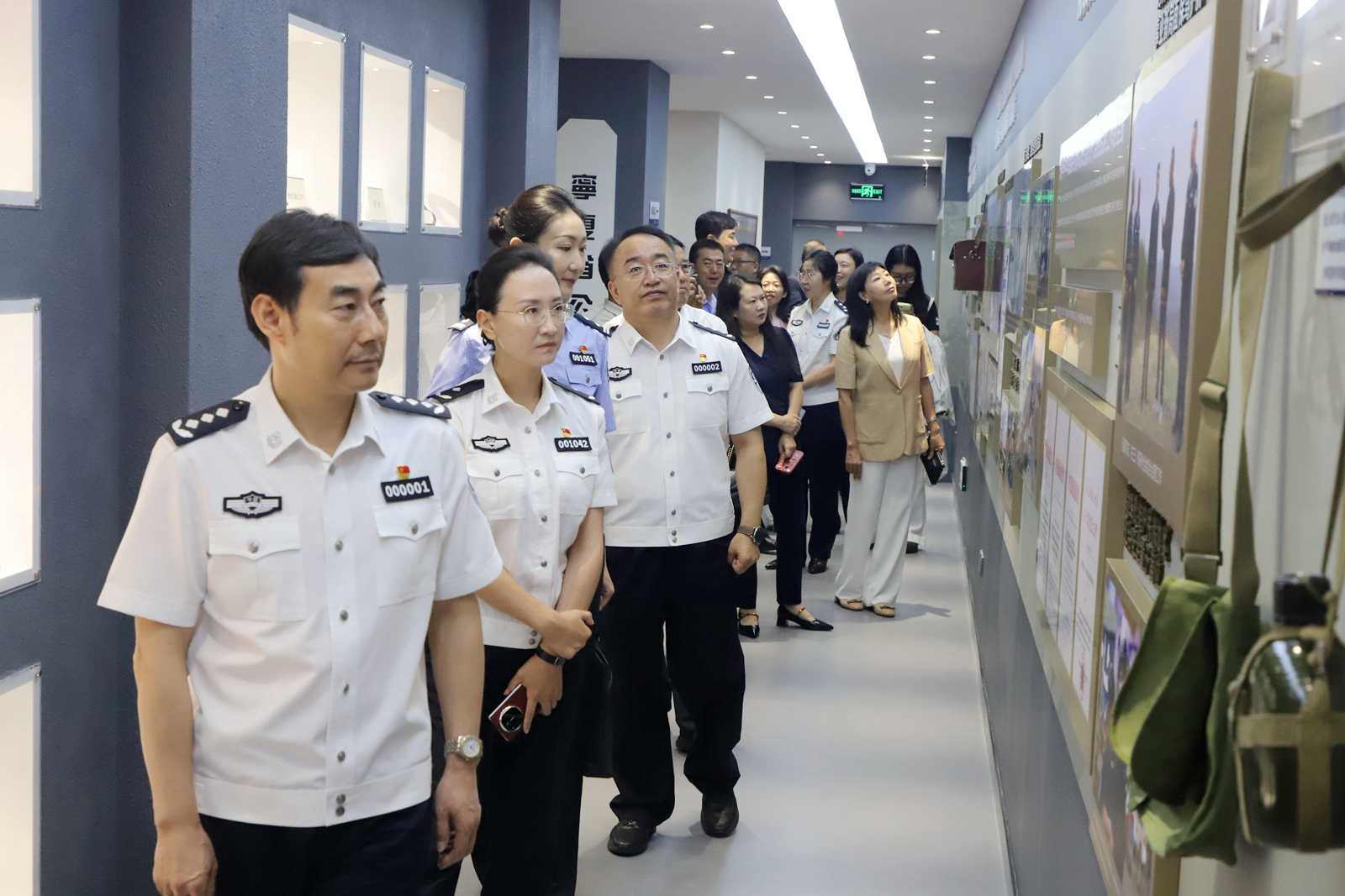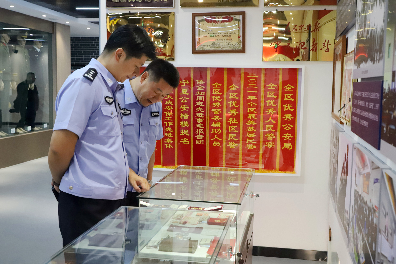 參加人員集中觀看了短片《印記:寧夏人民公安發(fā)展歷程》,并參觀博物館展廳。大家認(rèn)真聽(tīng)取講解員講解,深情凝望一張張生動(dòng)感人的歷史照片,認(rèn)真端詳一件件彌足珍貴的史料實(shí)物,不時(shí)駐足詢問(wèn),了解寧夏公安文物相關(guān)細(xì)節(jié),感受老一輩公安同志在艱苦環(huán)境中無(wú)私奉獻(xiàn)的忠誠(chéng)執(zhí)著,感受公安英模在危難時(shí)刻挺身而出的英勇無(wú)畏,感受基層民警扎根基層服務(wù)群眾的溫暖時(shí)刻,回望新時(shí)代公安隊(duì)伍科技強(qiáng)警、改革創(chuàng)新的奮進(jìn)足跡。