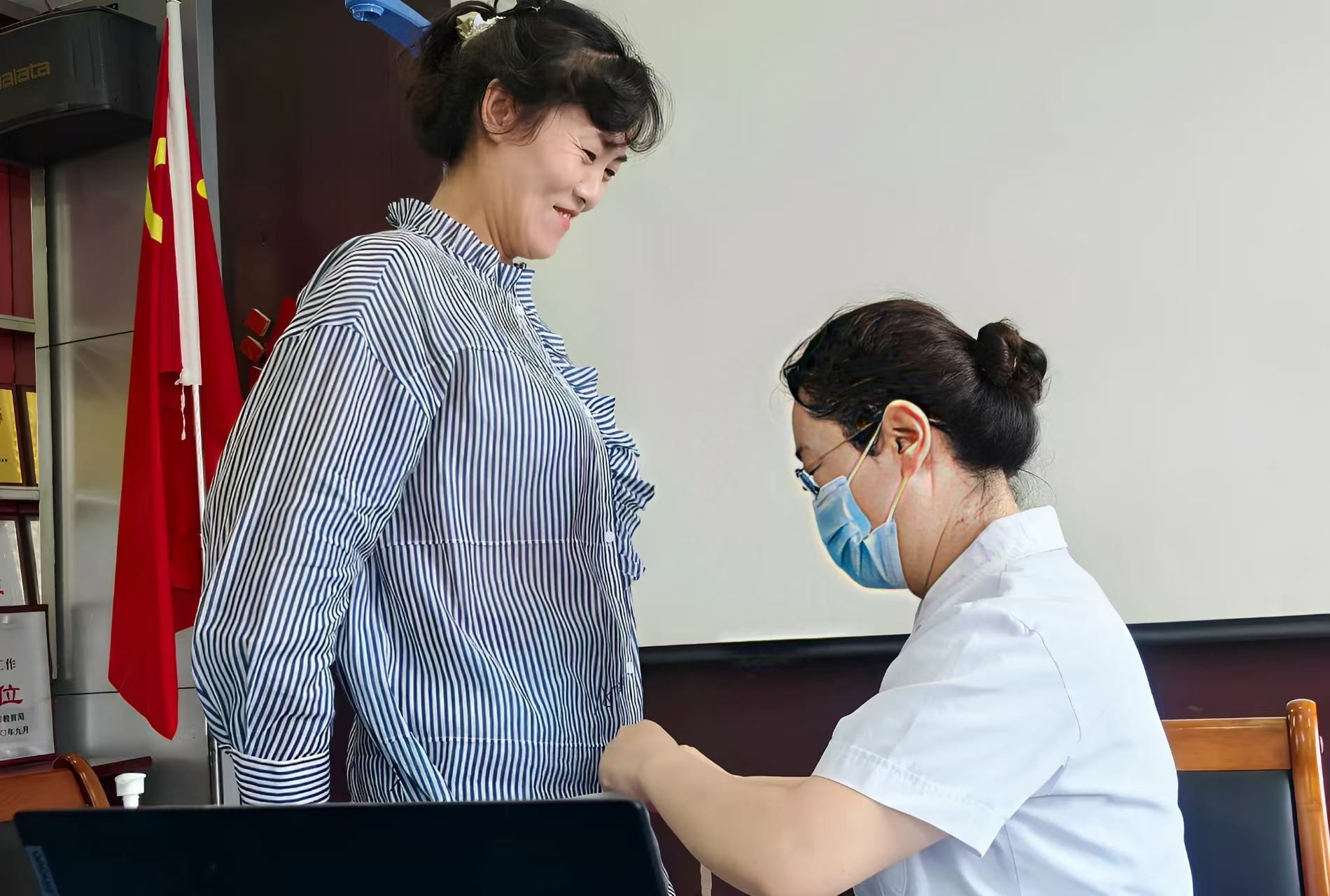 更令人感動(dòng)的是王力的故事。在執(zhí)行任務(wù)期間,他腎結(jié)石急性發(fā)作,疼痛難忍。但為了不耽誤體檢進(jìn)度,他打著止痛針堅(jiān)持工作,跳著腳忍受疼痛,連續(xù)工作了兩天。“看到那么多工人在等著體檢,我怎么能休息?”簡(jiǎn)單樸實(shí)的話語(yǔ),道出了一名醫(yī)務(wù)工作者的責(zé)任與擔(dān)當(dāng)。