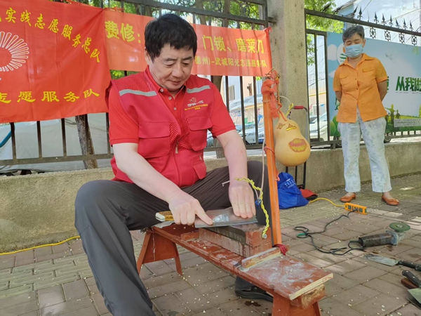 謝雙義免費為社區(qū)居民磨菜刀。(資料照)