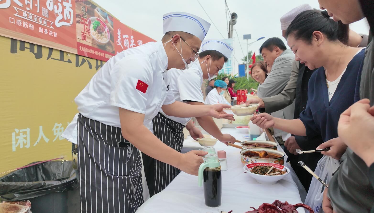 在農(nóng)產(chǎn)品展銷區(qū),平羅縣各鄉(xiāng)鎮(zhèn)企業(yè)及商戶帶來(lái)的優(yōu)質(zhì)商品齊聚一堂。醇厚的胡麻油、鮮嫩的農(nóng)家豆腐、甘甜的新鮮瓜果等“土特產(chǎn)”琳瑯滿目,通過(guò)現(xiàn)場(chǎng)展示、展銷的方式,集中呈現(xiàn)平羅縣名特新優(yōu)農(nóng)產(chǎn)品與特色美食,吸引眾多農(nóng)民群眾和游客駐足品嘗、選購(gòu)。此外,“平羅十三香”美食甄選活動(dòng)成為一大亮點(diǎn),13個(gè)鄉(xiāng)鎮(zhèn)的特色美食技藝同臺(tái)比拼,生動(dòng)展現(xiàn)“一鎮(zhèn)一味,一味一故事”的平羅美食文化底蘊(yùn)。