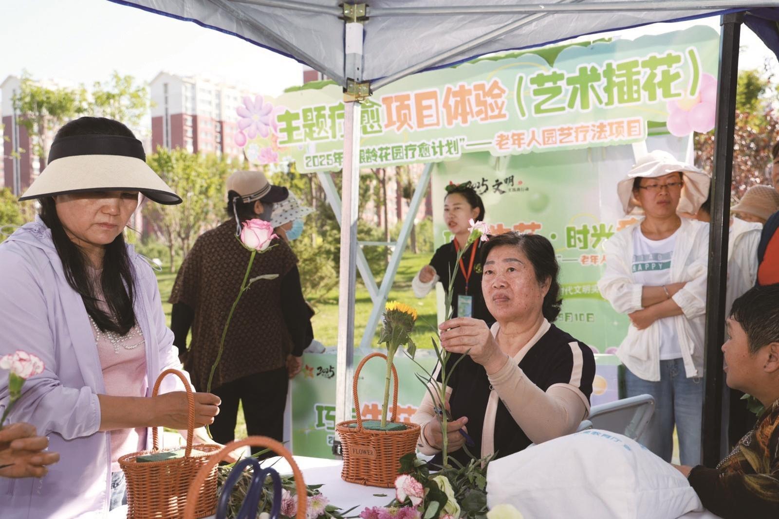 9月10日,金鳳區(qū)滿城北街街道居安家園未來社區(qū)熱鬧非凡,“銀齡花園療愈計劃——巧手生花?時光療愈”老年人園藝療法主題活動火熱開展。活動以趣味互動體驗,帶領老年人親近植物、聯(lián)結鄰里、融入傳統(tǒng),既搭建起自然療愈、鄰里相融、文化傳承的溫馨平臺,也為“幸福養(yǎng)老在銀川”品牌注入鮮活實踐。記者 吳春霖 攝