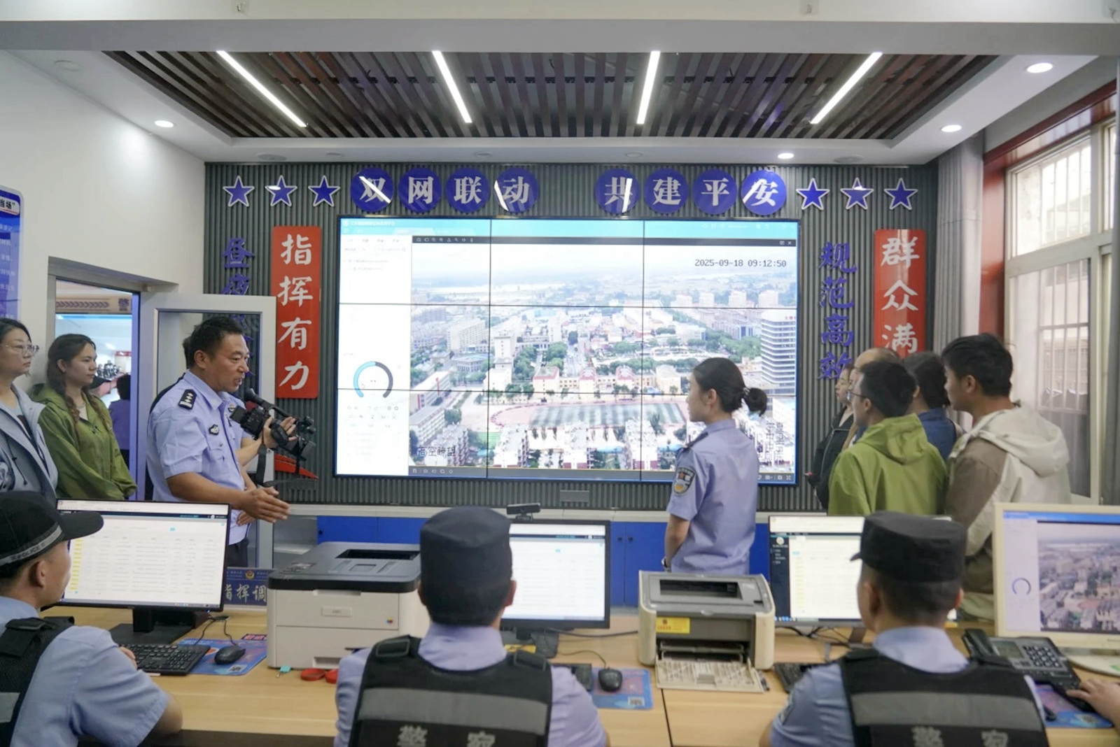 走進城關(guān)派出所,代表們首先被綜合指揮室的“科技感”吸引。講解民警依托高空瞭望塔監(jiān)控系統(tǒng),現(xiàn)場演示盜竊人員追蹤、涉案車輛排查的全流程:從監(jiān)控畫面精準鎖定目標,到實時調(diào)度警力布控,再到接處警的標準化處置,每一步都讓群眾直觀感受到“智慧警務(wù)”的高效。同時,民警還詳細介紹了案件組的人員配置,讓大家了解和感受每起案件背后,專業(yè)力量的快速響應和全力攻堅,進一步增進群眾對公安工作的理解。