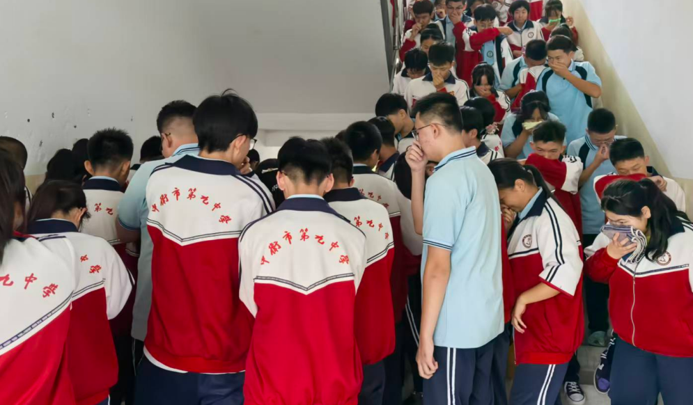 隨著一陣急促的火災(zāi)警報聲響起,應(yīng)急疏散逃生演練正式開始。演練假設(shè)教學(xué)樓某處發(fā)生“火情”,濃煙(模擬煙霧)迅速蔓延。各班學(xué)生在老師及消防志愿者的引導(dǎo)下,嚴(yán)格按照逃生要領(lǐng),彎腰低姿、用濕毛巾捂住口鼻,沿著預(yù)定疏散路線,快速、有序地從各個安全出口撤離至學(xué)校操場的安全地帶。整個疏散過程緊張而不慌亂,用時短、效率高,達(dá)到了預(yù)期效果。集合完畢后,消防員對本次疏散演練進(jìn)行了簡要的點評,再次強調(diào)了逃生中的注意事項。
